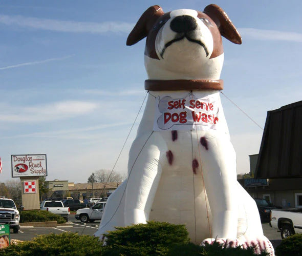 - Please be courteous to our neighbors, and scoop 'da poop. We offer plastic bags at no charge, and a dumpster is available across the drive from the shop. Please use them.