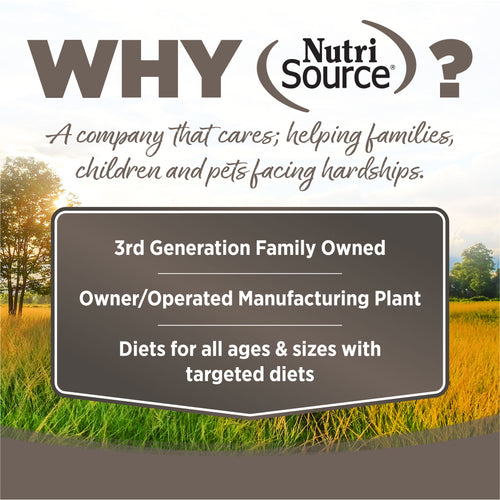 • NutriSource grain inclusive formulas deliver compact nutrition and include pre and pro-biotics to help support a healthy gut.