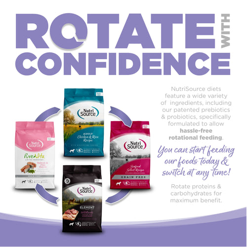 • NutriSource grain free formulas deliver compact nutrition and include pre and pro-biotics to help support a healthy gut.