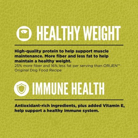 ORIJEN Senior Dog Food is formulated to meet the nutritional levels established by the AAFCO Dog Food Nutrient Profiles for maintenance.
